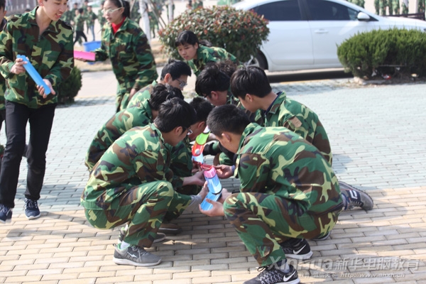 每個人拿一節塑料管子,接力把球運到目的地。教官們也提出了項目要求:小球在行進過程中,只能前進,不能后退;小球在運送過程中,身體和手掌的任何部位不能接觸到小球,否則返回起點;在小球沒有離開報紙前,雙腳不能移動;不能刻意使報紙變形影響到小球的移動;如果中途乒乓球掉落或沒有到杯子里,將從起點重新開始;在跑動的過程中嚴禁慌張碰撞,以致人跌倒。移花接木考驗的是個人責任與團隊協作,通過手中的資源,全隊協作,完成整體的項目挑戰。協作、執行、責任、細節、用心、反省,在該項目中,同學們的感悟太多,配合中出現的諸多問題會在此刻直白的顯現出來。