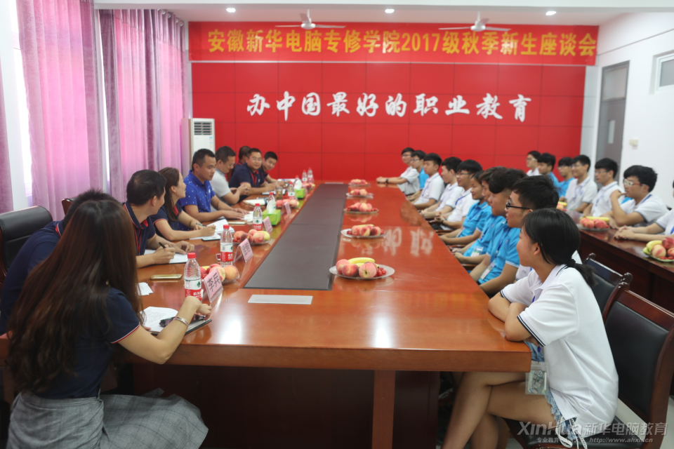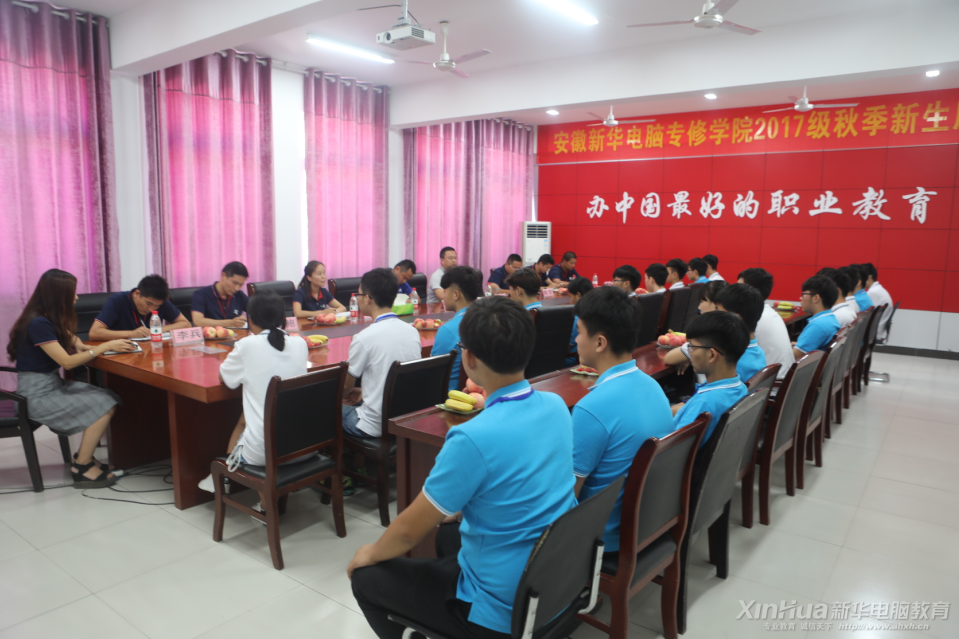安徽新華電腦專修學(xué)院院長助理胡德俊、創(chuàng)就業(yè)指導(dǎo)中心主任胡飛亞、學(xué)生處主任盛文彬,并由學(xué)生處楊老師主持了本次新生見面會。
