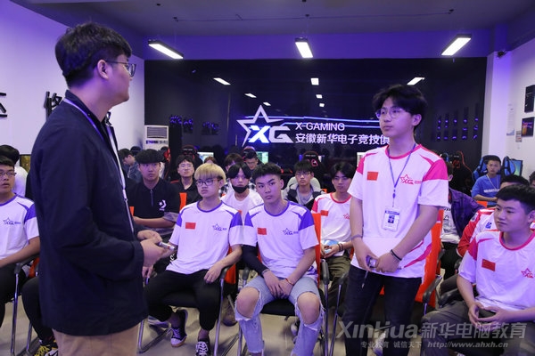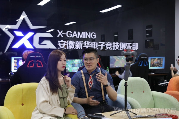 同時現(xiàn)場還請到了電競知名媒體人曹起老師的團隊,與同學們進行了零距離的交流互動,并且由電競學院特別記者董琪老師對曹老師進行了采訪,曹起老師對安徽新華電腦專修學院電競專業(yè)教學水平給予了高度評價,并從專業(yè)的角度肯定了安徽新華電腦專修學院的實訓教學環(huán)境,同時他鼓勵同學們努力學習,抓住寶貴的時代機遇,爭做電競行業(yè)里弄潮兒。