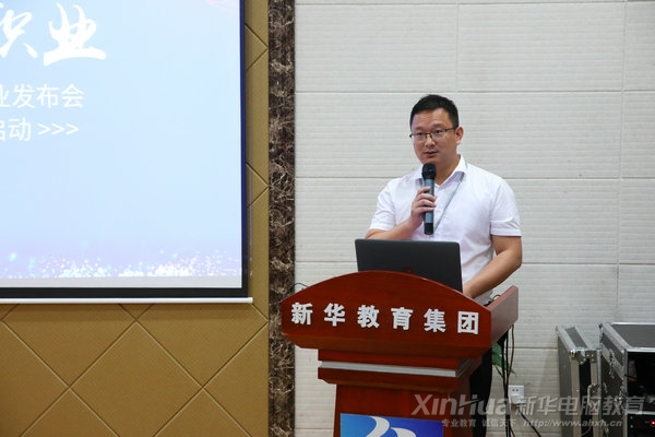 安徽新華電腦專修學院校區主任上臺向在場嘉賓致歡迎詞