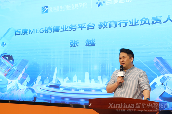 2023年被稱為生成式人工智能的突破之年,人工智能已進入了以大模型為核心的新時代,現場百度教育行業業務負責人張越表示百度營銷將積極與新華聯動,深度探索AI的實際應用和發展,激發新華電腦學校學生的無限潛能。