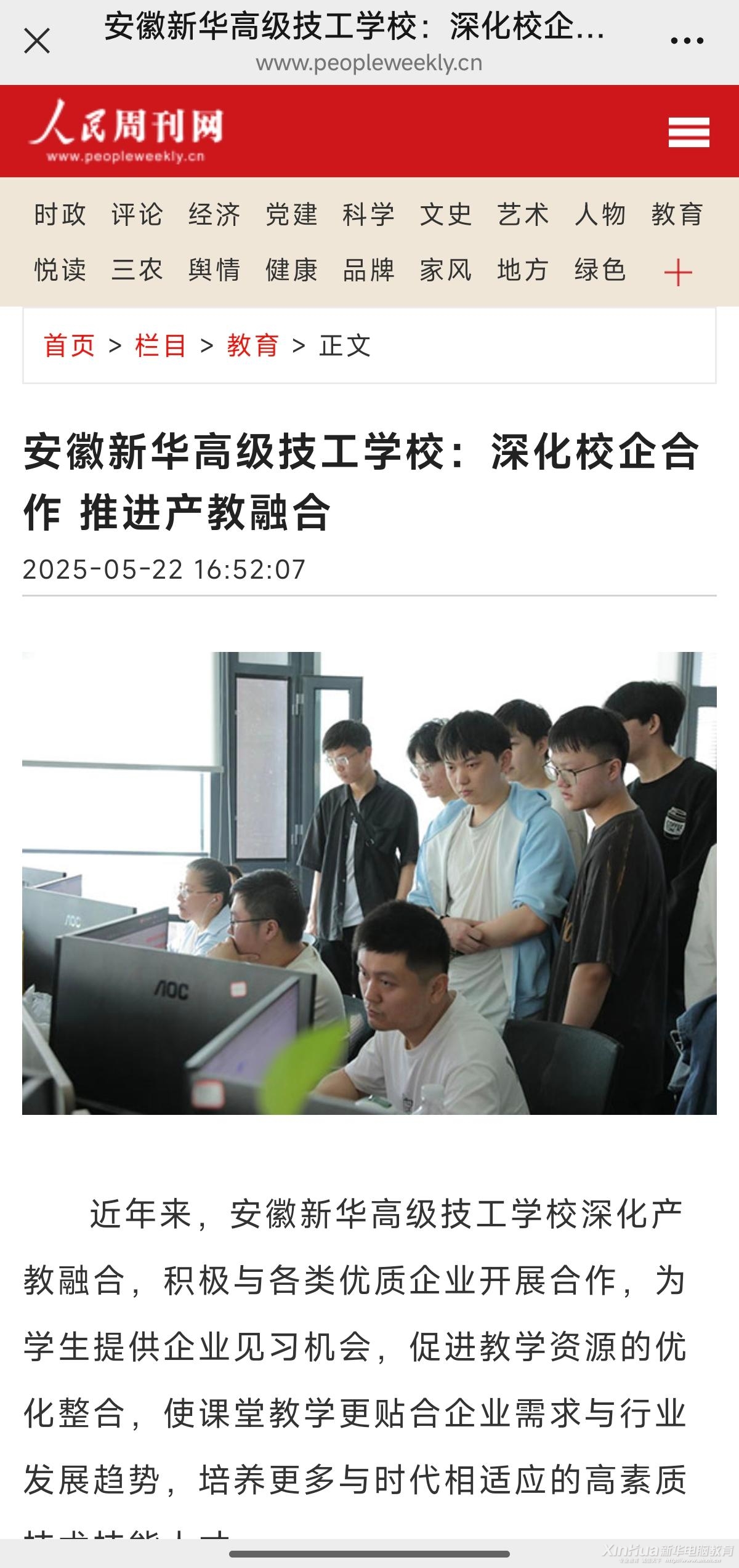 職業教育如何破解“學校熱、企業冷”的困局?人民周刊的一篇深度報道給出了答案:安徽新華高級技工學校以“訂單班”“現代學徒制”為紐帶,推動校企從“單向合作”轉向“雙向賦能”。學校與華強方特等30余家行業龍頭共建“人才孵化基地”,企業專家深度參與人才培養方案制定、課程標準開發及實訓教學,實現“招生即招工、畢業即就業”的無縫銜接。