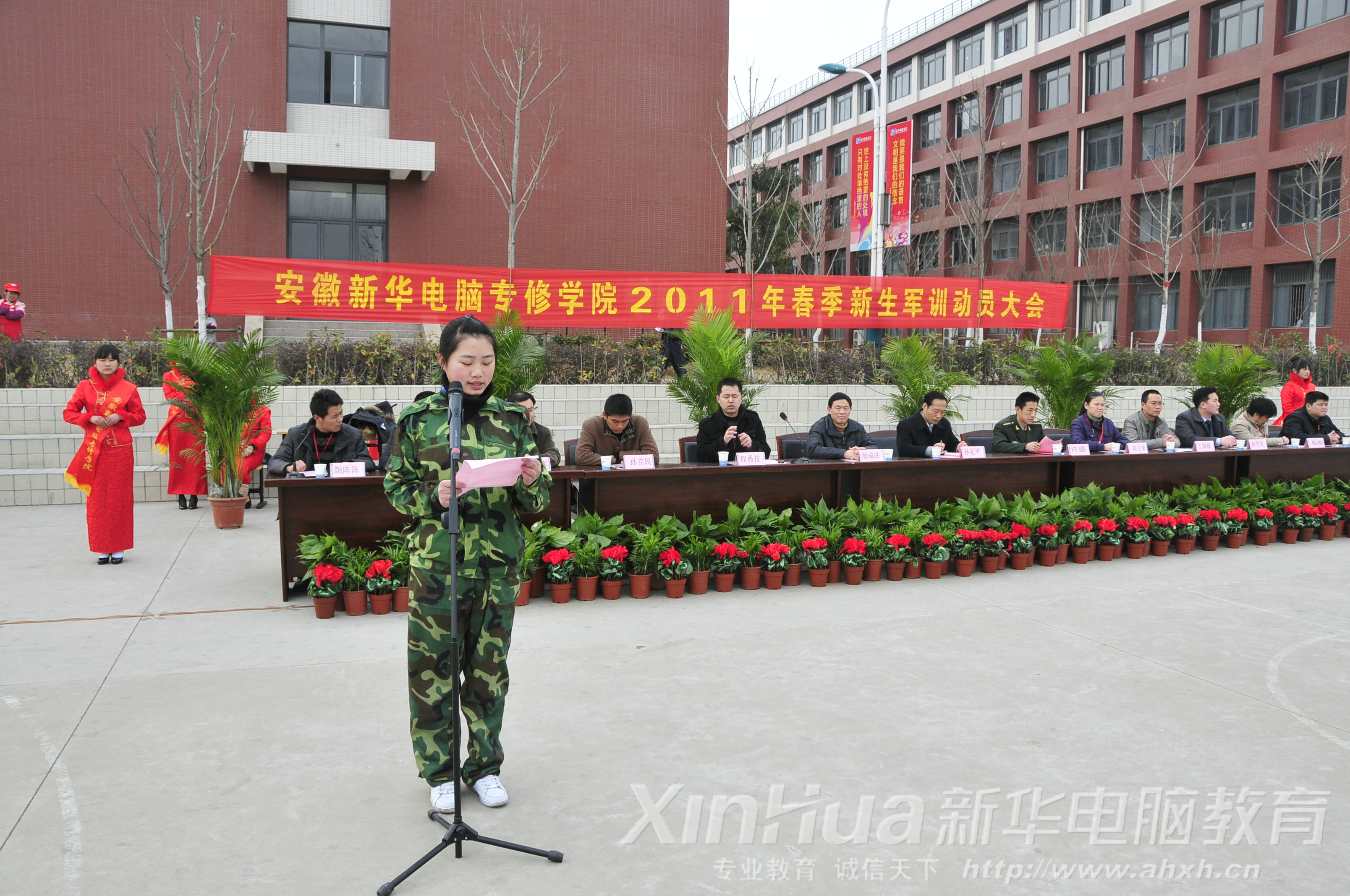 2011年3月15日,安徽新華電腦專修學(xué)院2011級(jí)新生軍訓(xùn)動(dòng)員大會(huì)在職教城新校區(qū)隆重舉行。安徽新華電腦專修學(xué)院副院長孫禮平、解放軍電子工程學(xué)院領(lǐng)導(dǎo)以及各教學(xué)部門負(fù)責(zé)人一同出席了此次動(dòng)員大會(huì)。
