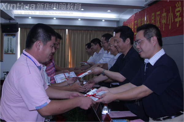 結(jié)業(yè)儀式上,省政協(xié)領(lǐng)導(dǎo)與新華的領(lǐng)導(dǎo)們共同為接受培訓(xùn)的120名教師辦法結(jié)業(yè)證書,學(xué)員代表向安徽新華電腦專修學(xué)院、新華學(xué)院贈送錦旗,上面寫著“服務(wù)基層教育、發(fā)揮人才優(yōu)勢”的字樣,以表達(dá)對新華免費承辦計算機培訓(xùn)、以教育方式回報社會的公益之心。