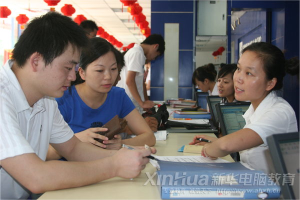 時值開學時節(jié),新華電腦專修學院咨詢報名中心內人頭攢動,匯集來自全國各地的IT愛好者。圖為學子正在接受職業(yè)規(guī)劃師指導